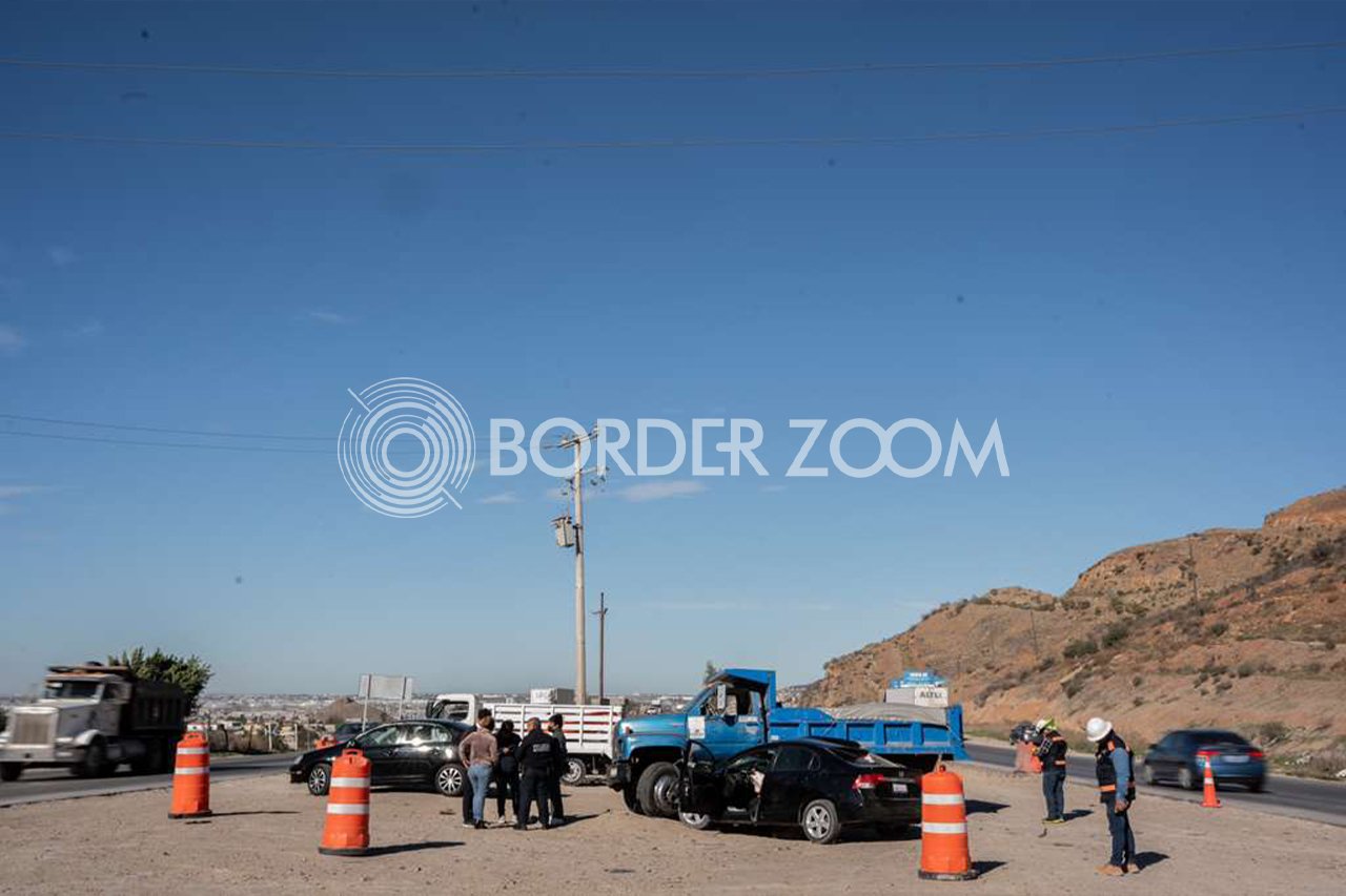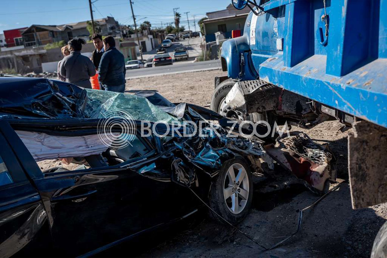 Un aparatoso choque entre un vehículo Honda Civic y un camión tipo dompe se registró la mañana de este jueves 4 de diciembre sobre el bulevar 2000, a la altura de la colonia Altiplano V Sección.