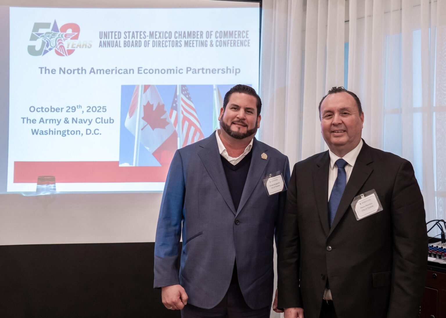 Washington, D.C, Estados Unidos, a 29 de octubre de 2025. El presidente municipal de Tijuana, Ismael Burgueño Ruiz, participó en la Reunión Anual del Consejo Directivo de la Cámara de Comercio México–Estados Unidos, que se llevó a cabo en Washington, D.C., donde se abordaron temas clave para la economía de la región, como seguridad, migración y desarrollo de la fuerza laboral.