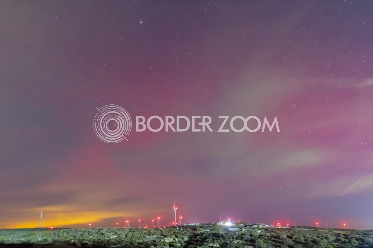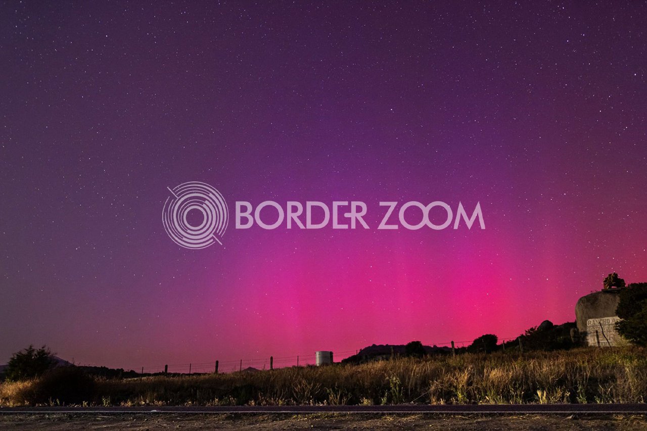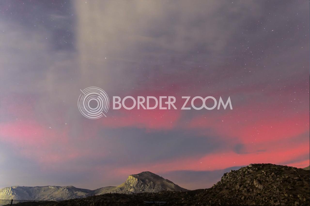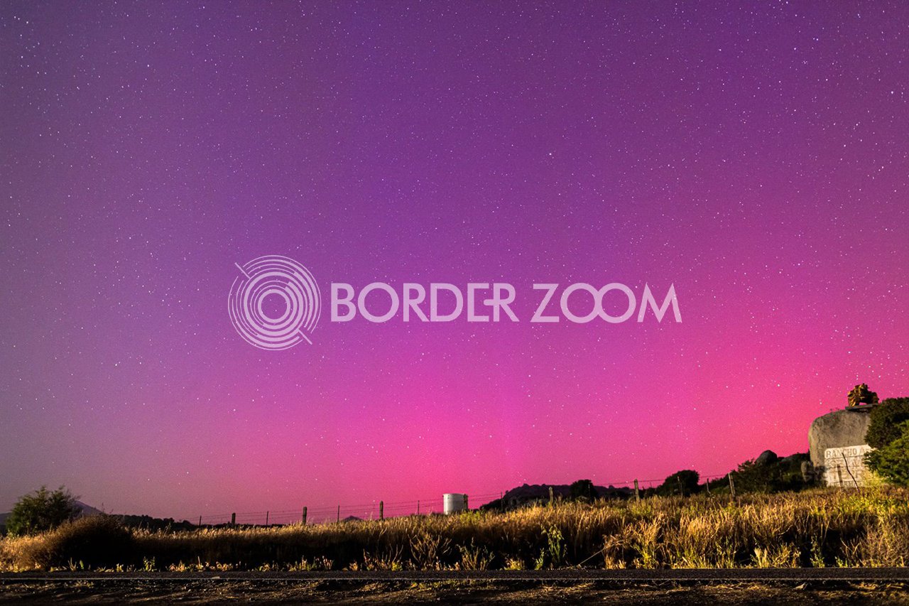 Imágenes captadas la noche del martes desde la zona del parque eólico en La Rumorosa, Baja California, muestran el impresionante espectáculo de auroras boreales visibles en el cielo tecatense.
