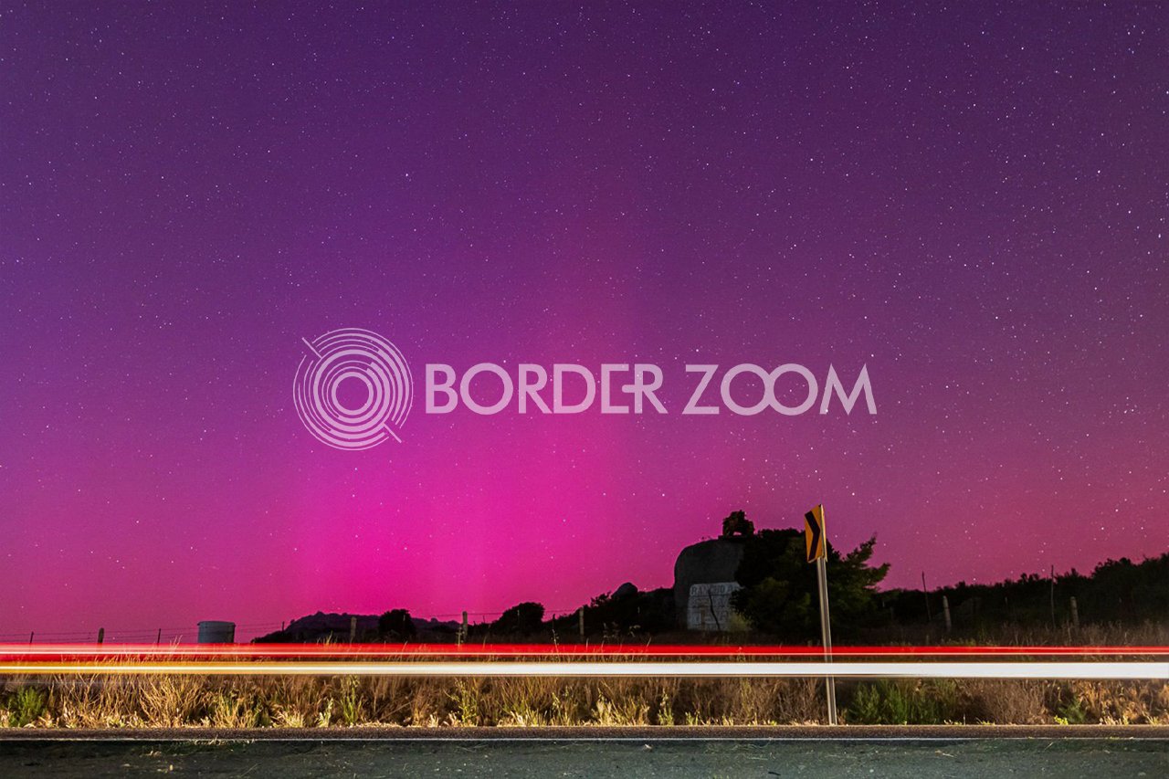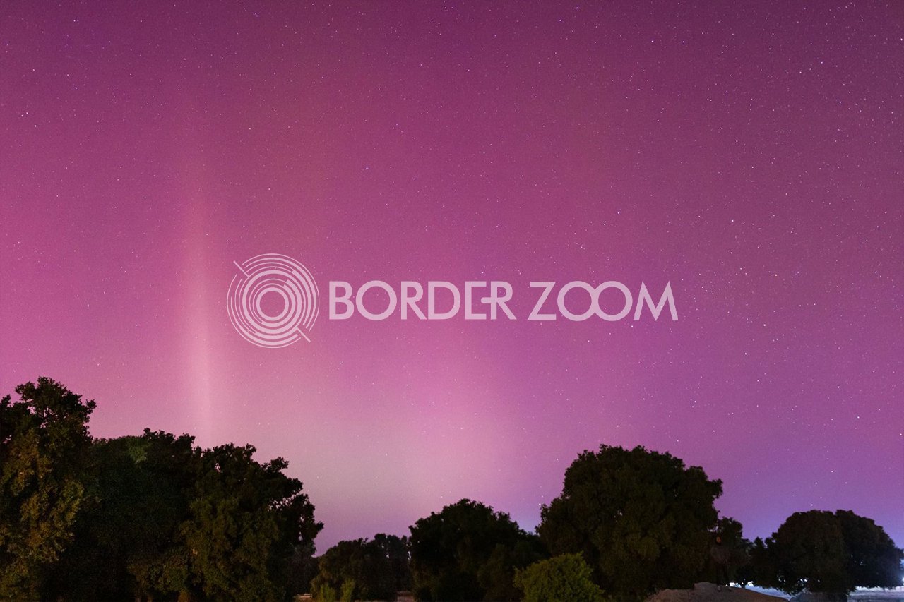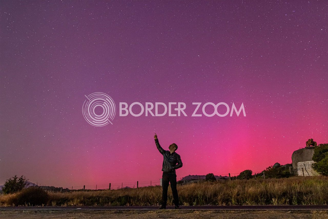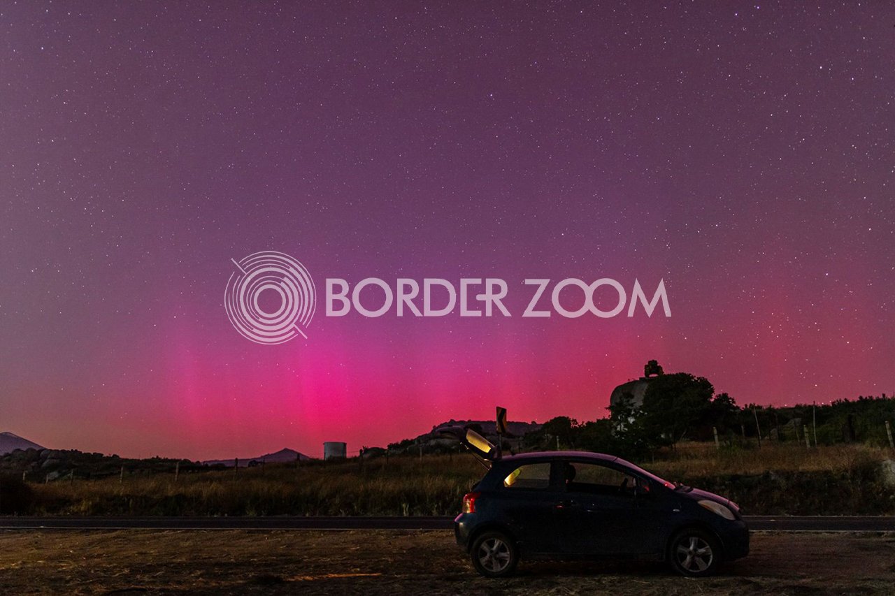 Imágenes captadas la noche del martes desde la zona del parque eólico en La Rumorosa, Baja California, muestran el impresionante espectáculo de auroras boreales visibles en el cielo tecatense.
