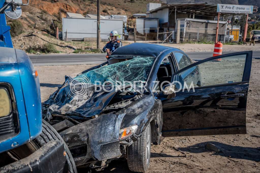Un aparatoso choque entre un vehículo Honda Civic y un camión tipo dompe se registró la mañana de este jueves