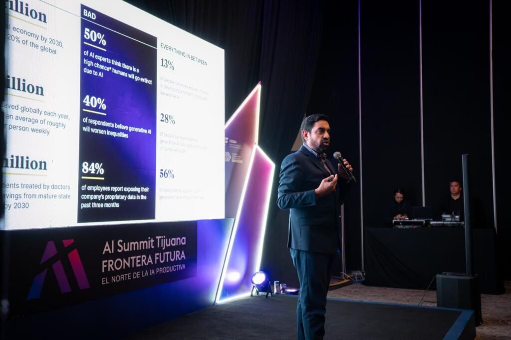 Tijuana, B.C., a 5 de noviembre de 2025.- Durante su participación en el AI Summit Tijuana, el coordinador del Observatorio