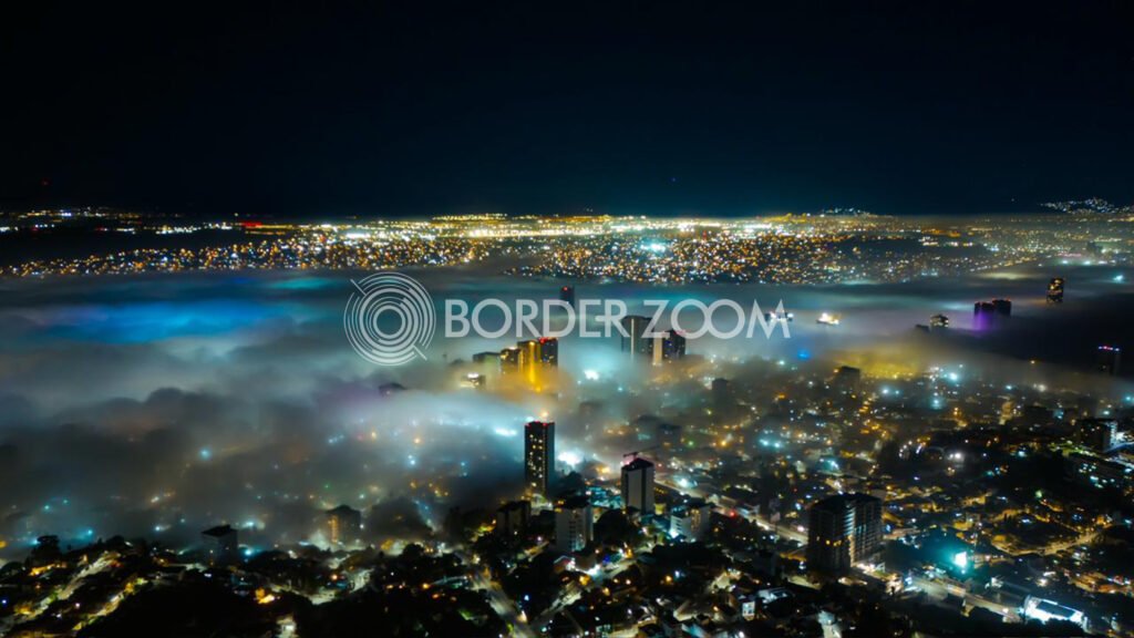 Así lució la noche del martes y madrugada del miércoles la densa capa de neblina que cubrió diversas zonas de