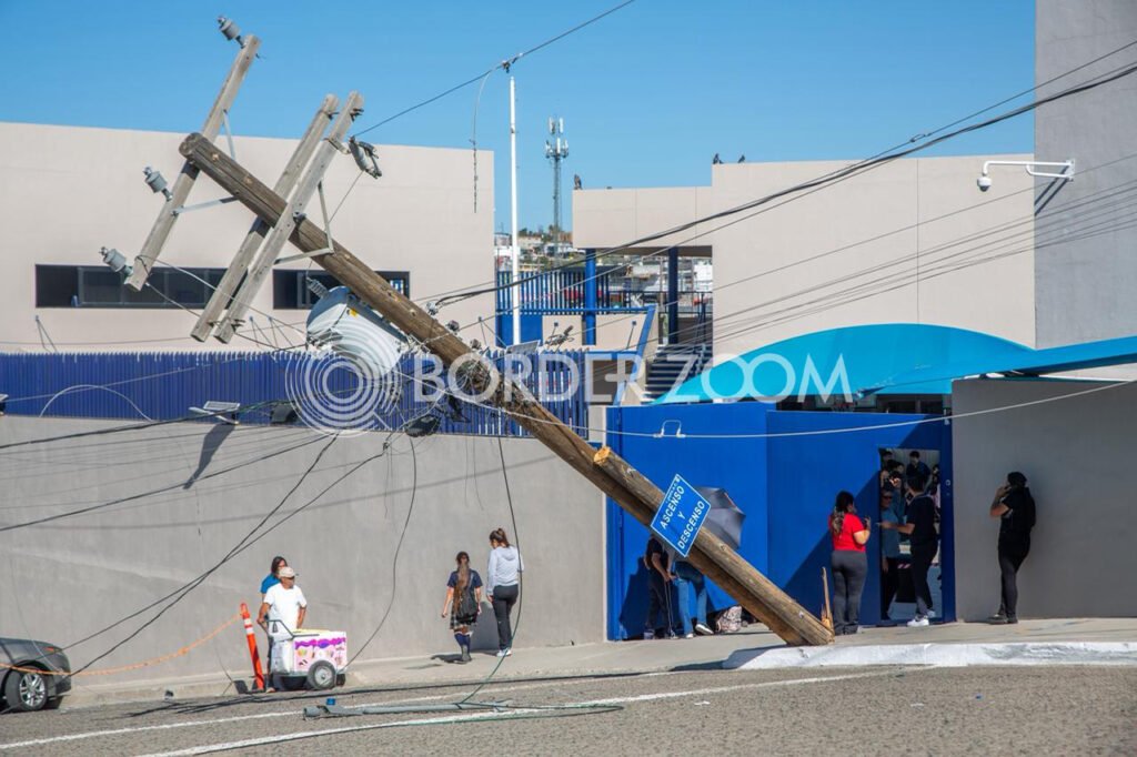 Un tráiler derribó un poste al jalar el cableado frente al Colegio Imperio de América, ubicado en la colonia Las