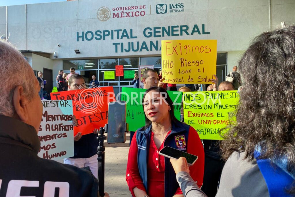 Trabajadores de la Secretaría de Salud realizaron este lunes una asamblea en la explanada del Hospital General de Tijuana, donde
