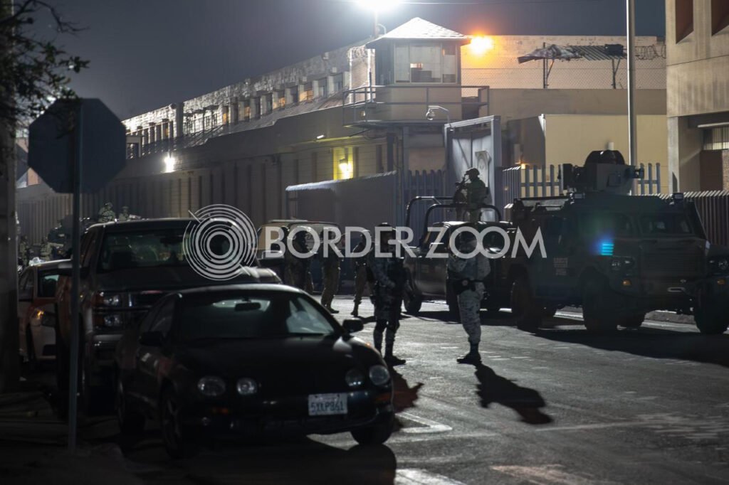 vUn fuerte despliegue de fuerzas federales se registró en las inmediaciones de la penitenciaría de La Mesa, en Tijuana. El