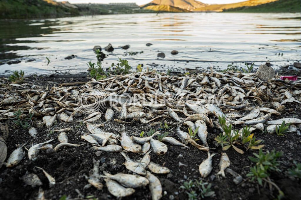 Miles de peces muertos pueden apreciarse por la orilla del vaso de la Presa Abelardo L. Rodríguez; son sardinas, de