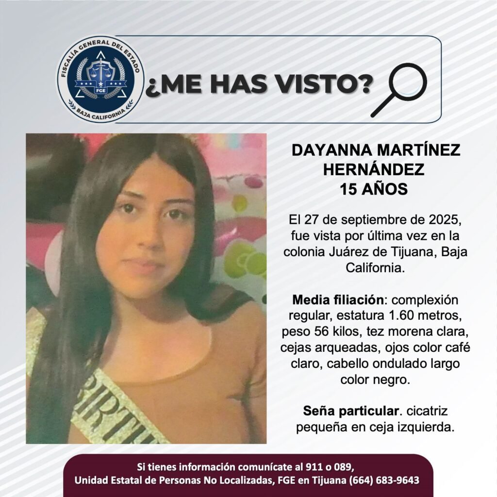 TIJUANA, BAJA CALIFORNIA, A 1 DE OCTUBRE DE 2025.- La Fiscalía General del Estado (FGE), solicita el apoyo de la