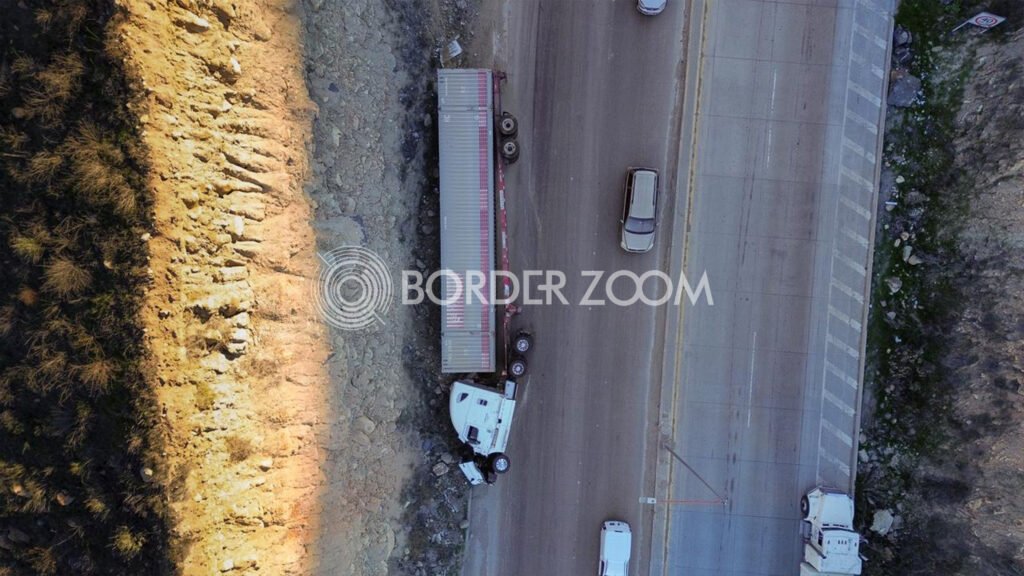 Un tráiler que se dirigía rumbo a Otay sobre el bulevar 2000 volcó al tomar una curva, lo que generó