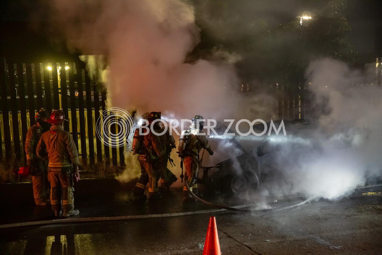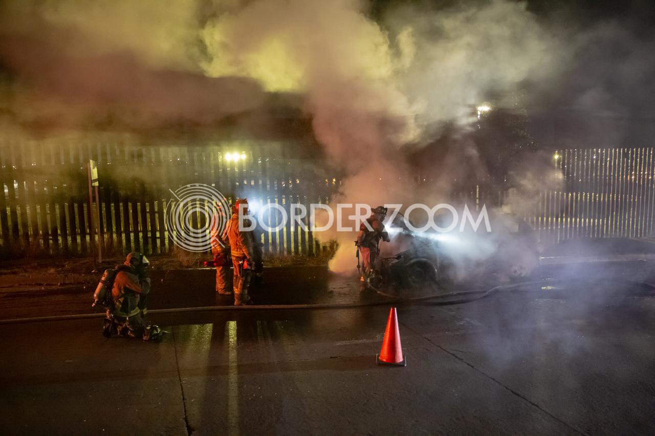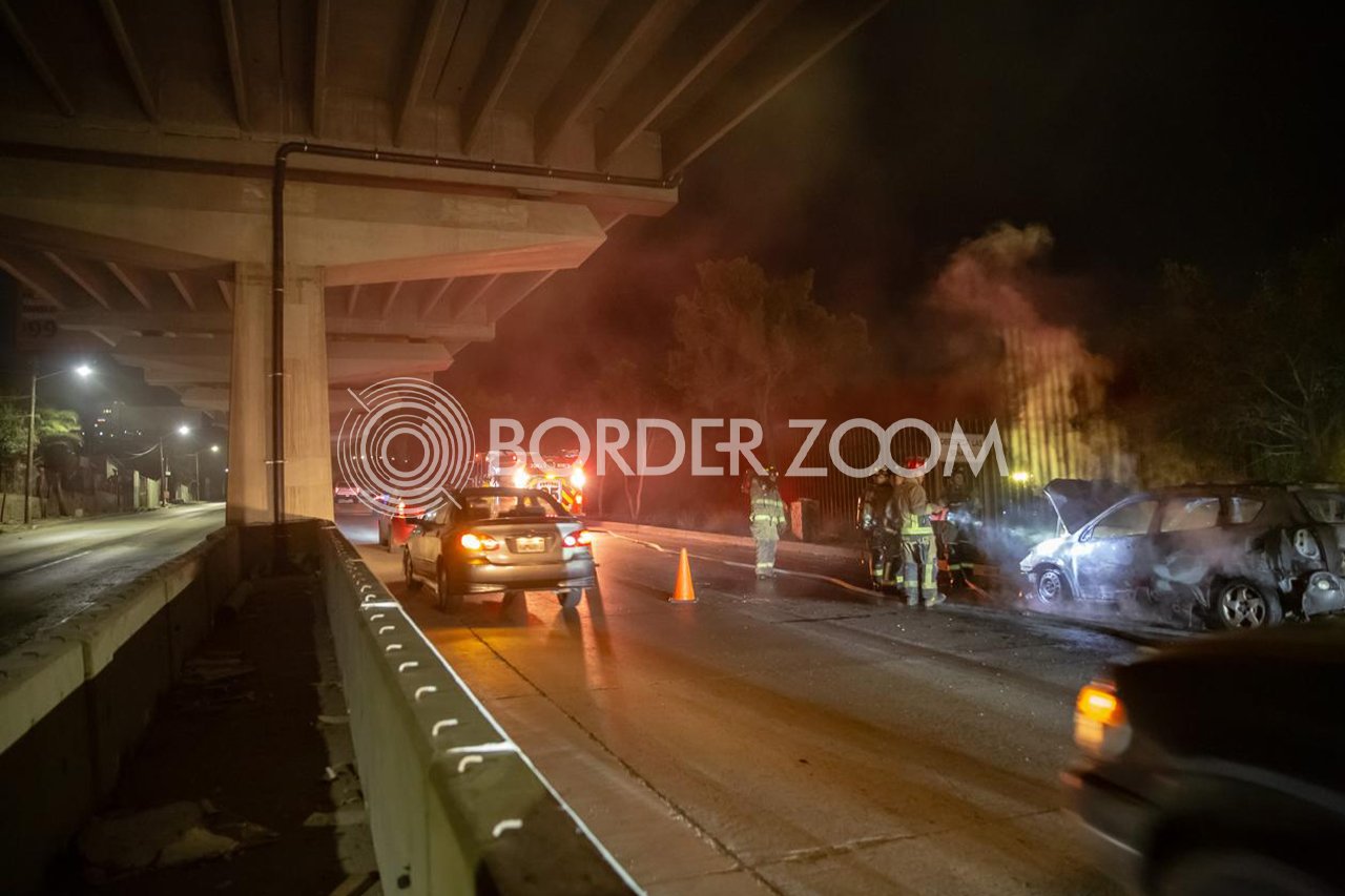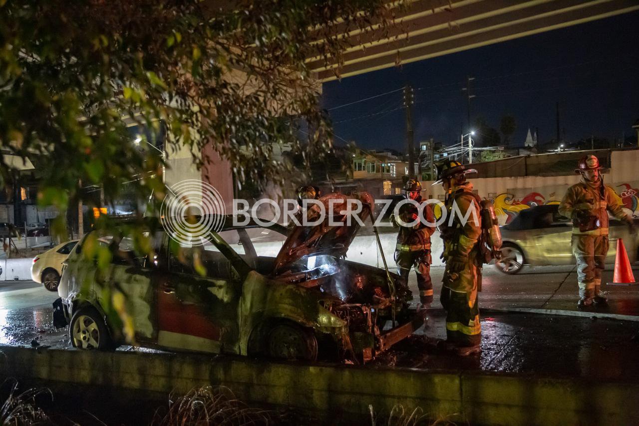 Un vehículo se incendió la noche del miércoles sobre la avenida Internacional, en dirección a Playas de Tijuana.