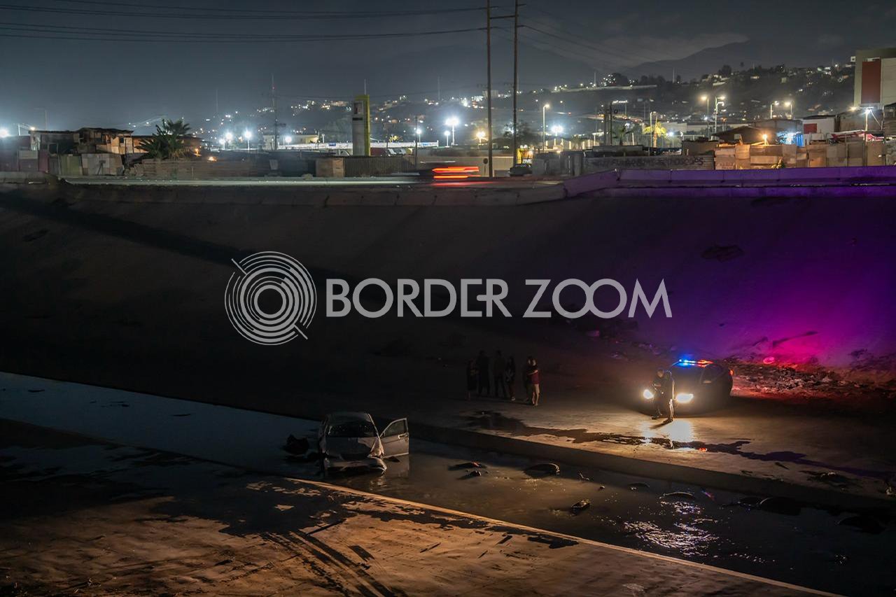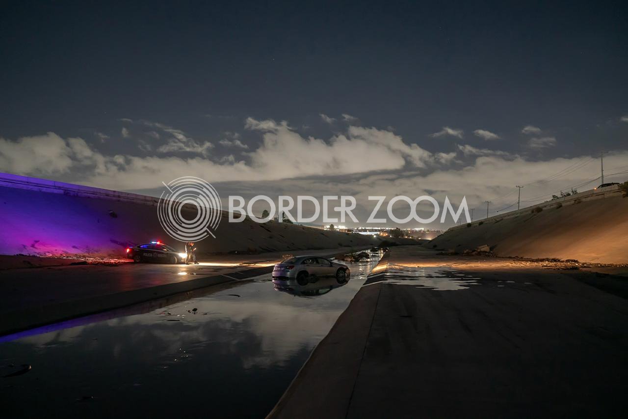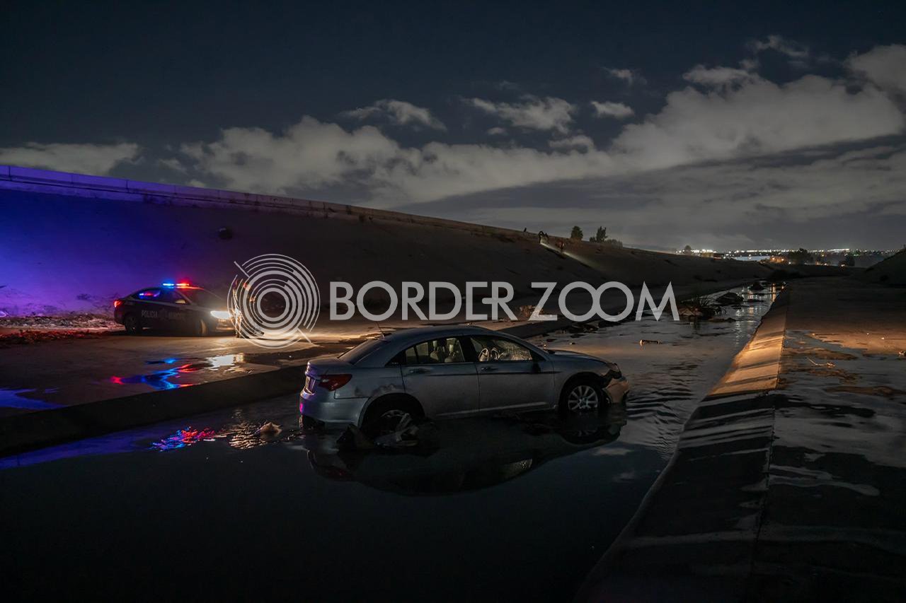Un conductor de aproximadamente 65 años terminó con su vehículo Chrysler en la canalización del Río Alamar la noche del miércoles.