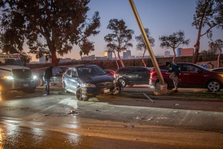 Camioneta derriba árbol y poste frente a la FGE; conductor abandona la unidad