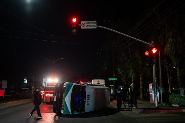 Vuelca unidad repartidora en el Parque Industrial Pacífico, conductor resulta ileso