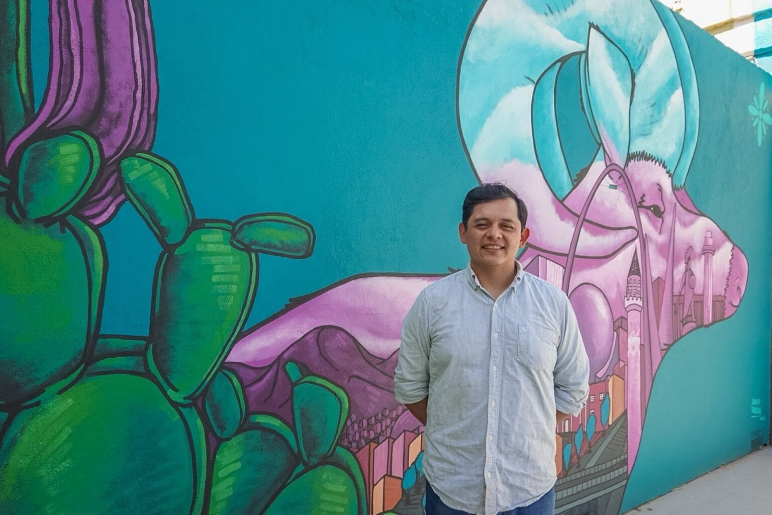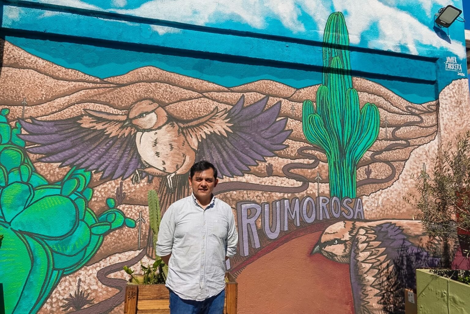 “Quise traer un pedacito de La Rumorosa a la ciudad, porque sé que hay mucha gente que no ha tenido la oportunidad de conocerla. Es un lugar muy especial y es un punto muy importante de nuestro estado”, expresó el muralista.