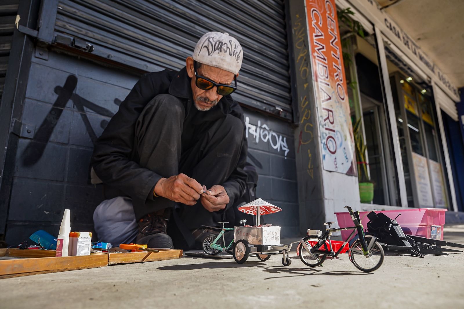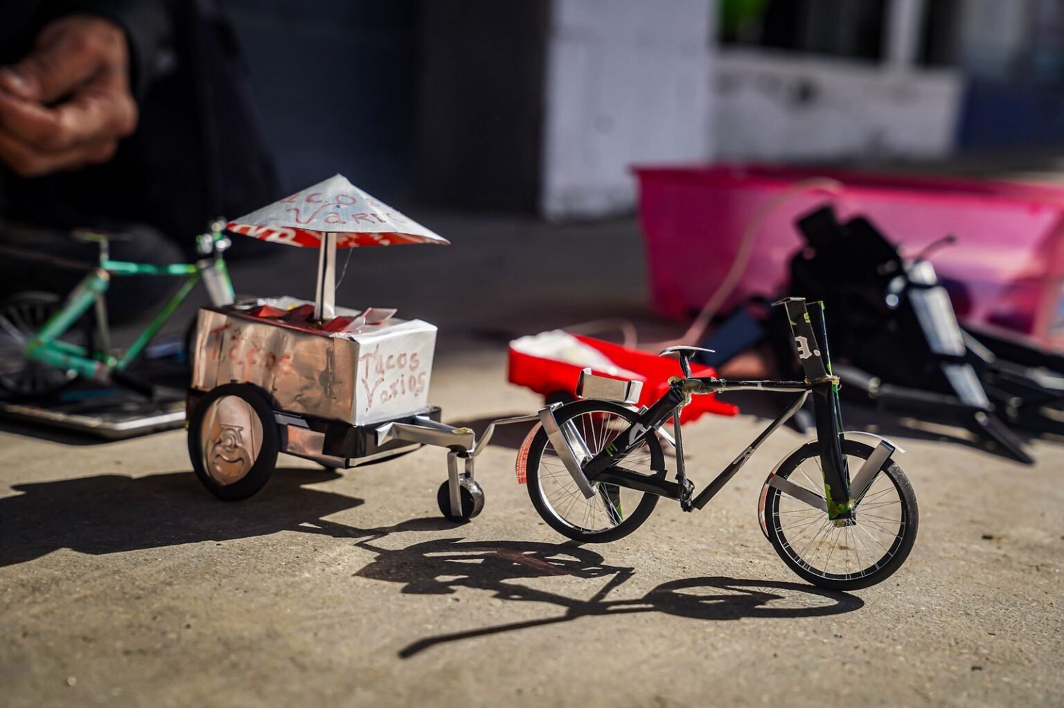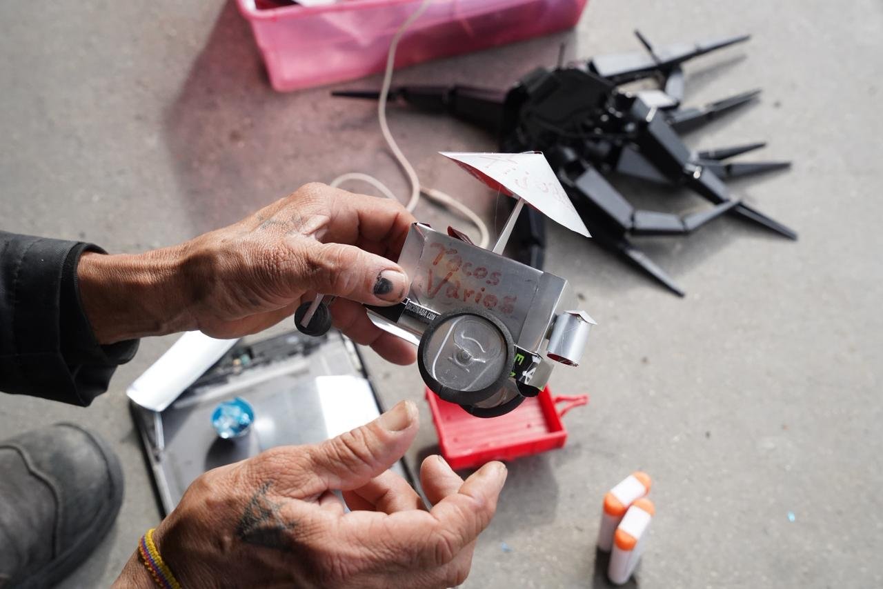 Con solo tijeras, pegamento y latas de aluminio, el artesano Juan Carlos Mier convierte materiales desechados en diminutas obras de arte: bicicletas, autos y motocicletas en miniatura que llaman la atención por su detalle.
