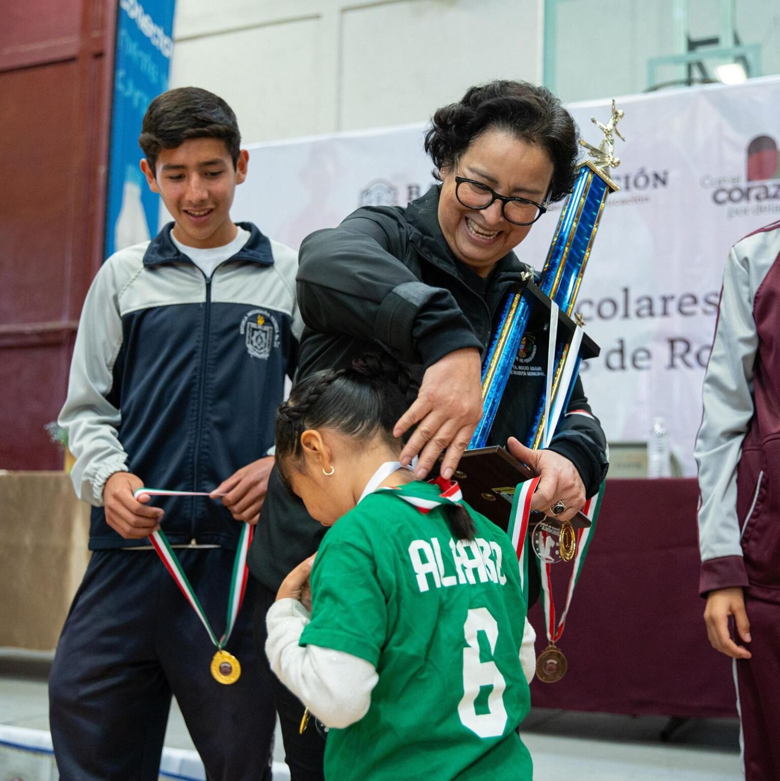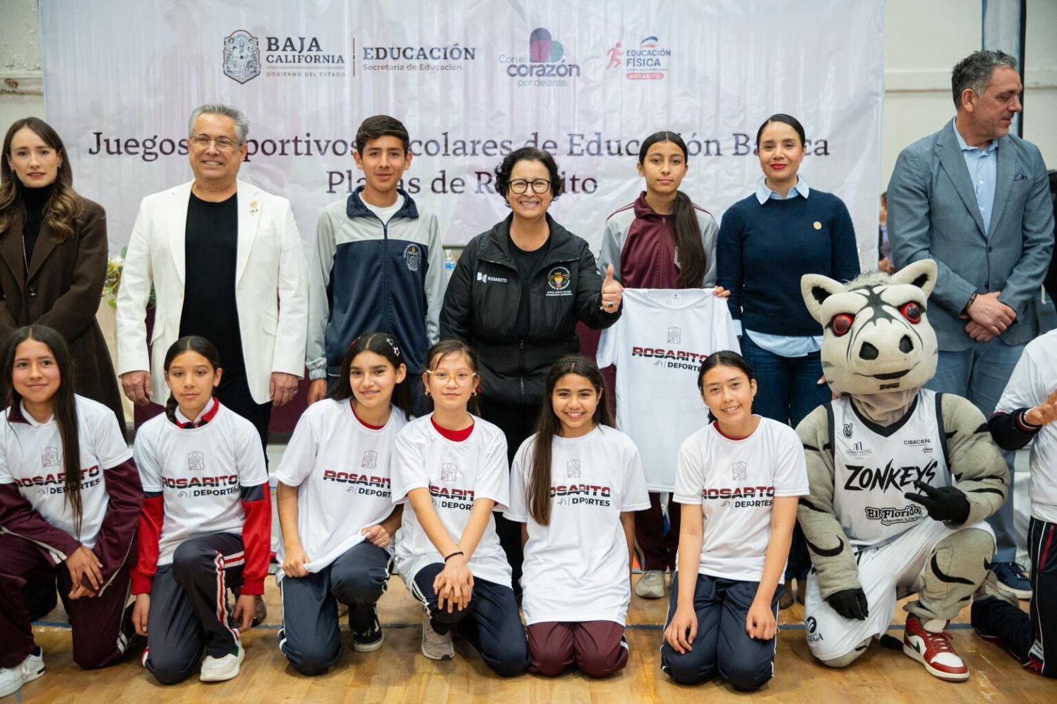 La ceremonia contó con la presencia de autoridades municipales y educativas, entre ellas la regidora de la Comisión de Juventud y Deporte, Yoselin Dellanira Peña Meléndrez; el secretario de Seguridad Ciudadana, Héctor Manzo; la gerente general de Zonkeys, Andrea Jáuregui; el director del IMDER, Francisco Carrasco, así como representantes escolares.