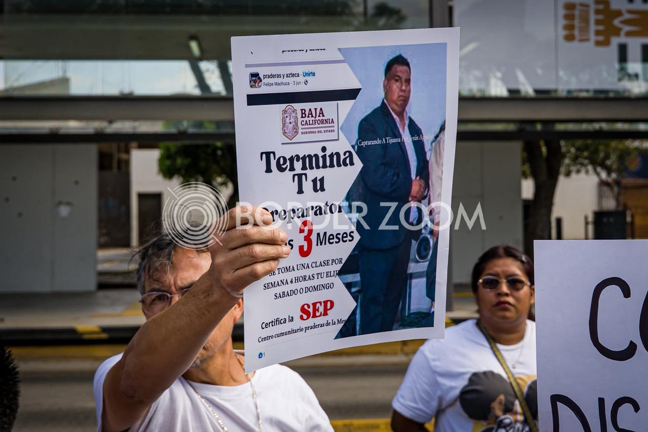 Decenas de personas se manifestaron este lunes en la Glorieta Diana Cazadora, en la Zona Río de Tijuana, para exigir una solución tras denunciar un presunto fraude cometido por la escuela “Preparatoria Josmach”.
