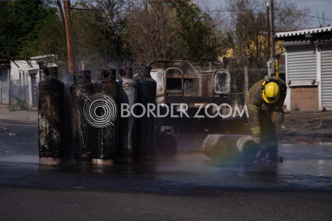 Según información del Cuerpo de Bomberos de Mexicali, el camión transportaba alrededor de 25 tanques de gas, entre cilindros de 45 kilos y “minas” de 10 kilos. Al menos tres de estos tanques explotaron, generando una intensa columna de humo visible desde distintos puntos de la ciudad.