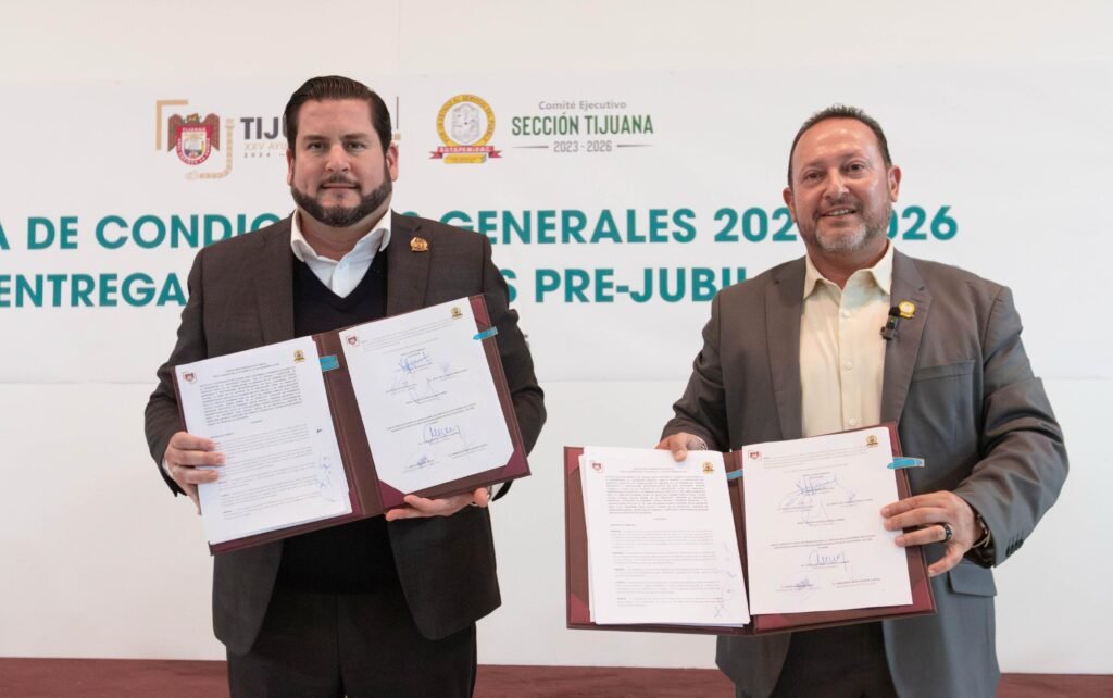 Tijuana, Baja California, a 30 de abril de 2025 . El presidente municipal, Ismael Burgueño Ruiz, concretó la firma de las Condiciones Generales de Trabajo 2025–2026 con el Sindicato de Burócratas, un acto que representa un avance importante en la protección de los derechos laborales del personal sindicalizado, asegurando beneficios, estabilidad y reconocimiento a su labor dentro del Gobierno Municipal.