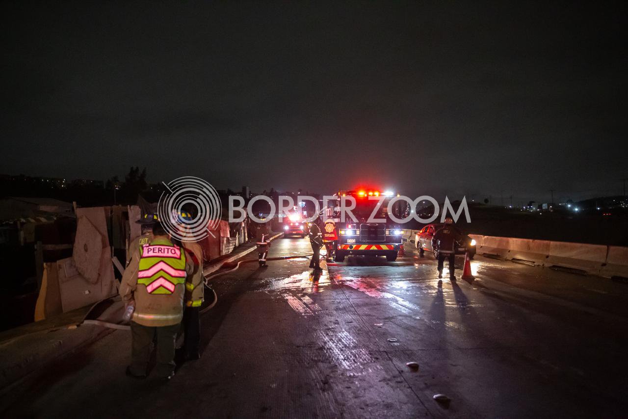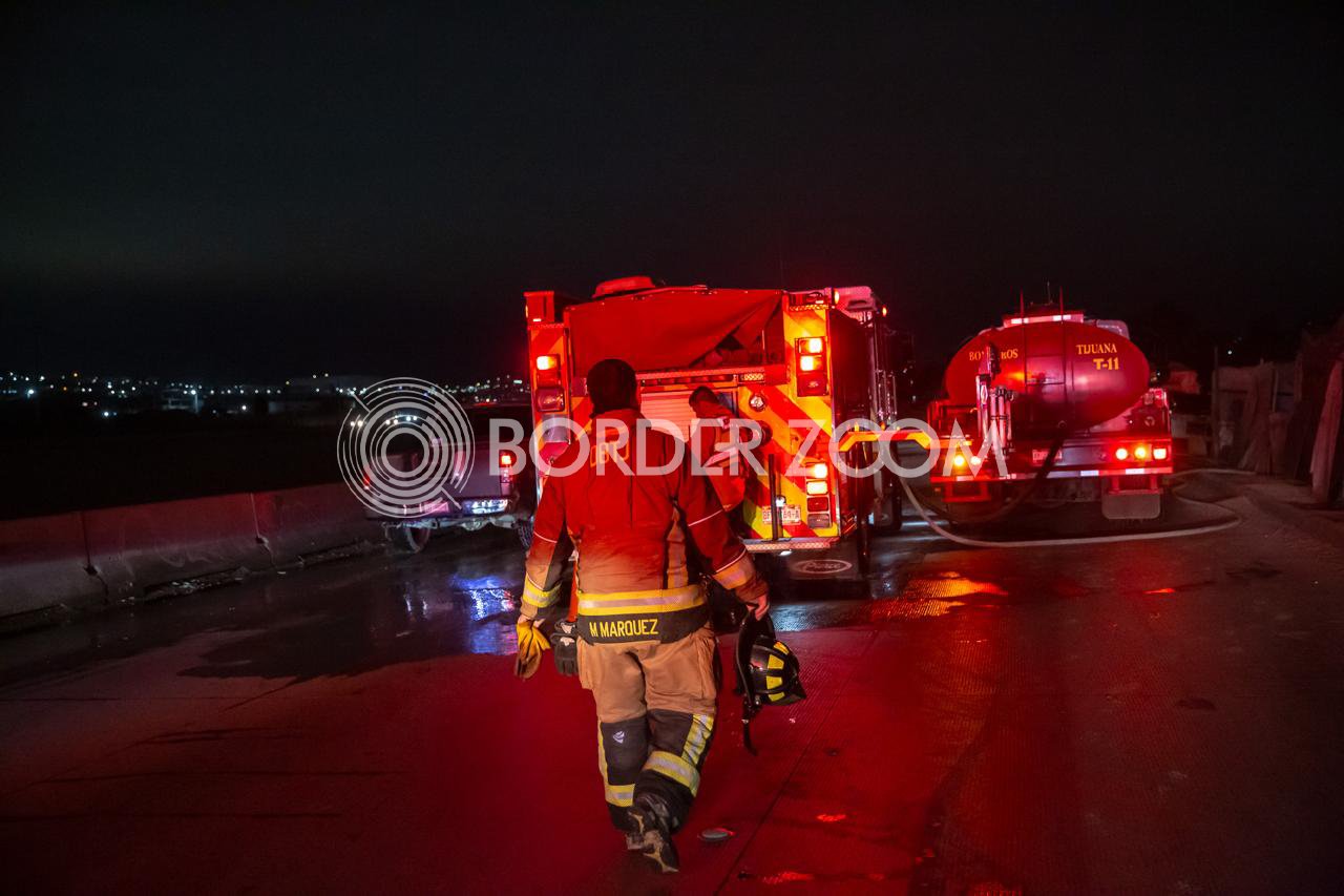 Una casa ubicada en el Cañón del Padre, a un costado de la Vía Rápida Alamar y el bulevar Gato Bronco, quedó completamente consumida por el fuego, junto con una traila contigua, durante la noche de este jueves.