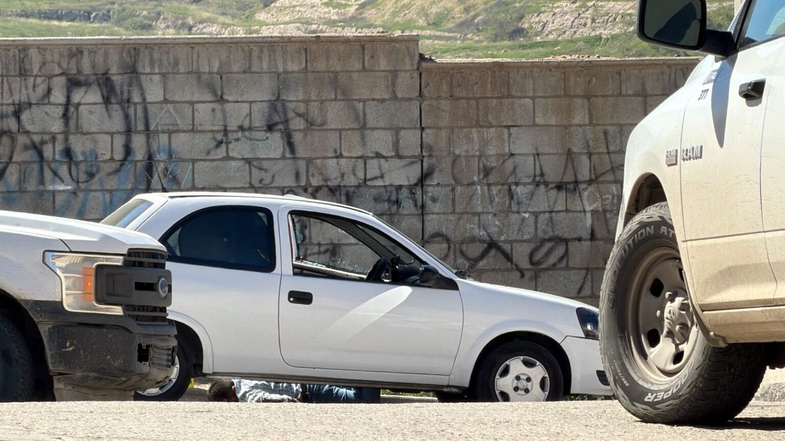 Al llegar al lugar, agentes localizaron a un hombre sin vida a un costado de un vehículo tipo sedán marca Chevrolet Chevy color blanco, con placas AMB-157-A. La víctima vestía camisa de vestir azul a cuadros, pantalón de mezclilla azul y botas color café, y presentaba impactos de bala en la región cefálica.