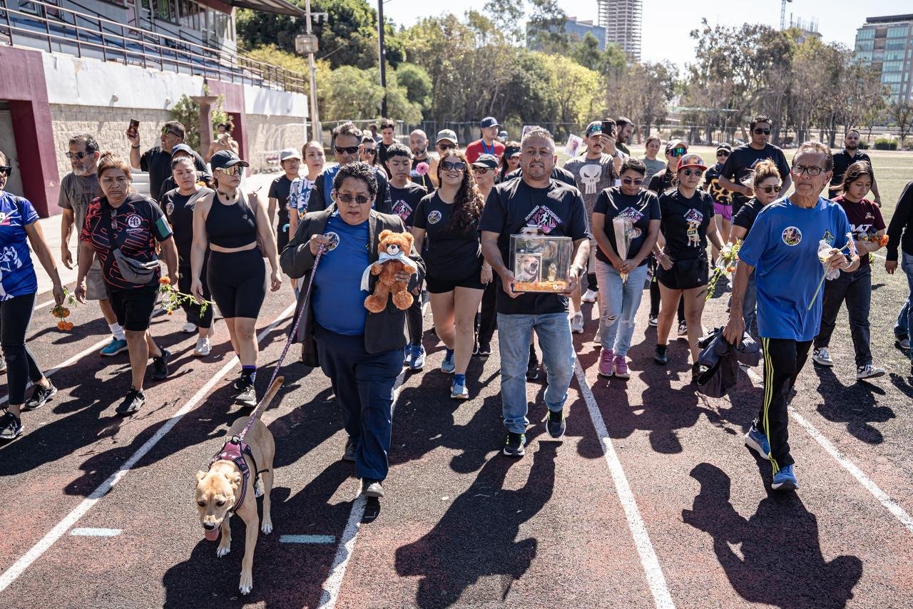Durante el cortejo, su dueño, Héctor Hernández, junto con varios corredores, realizó una última caminata en el circuito del CREA, el lugar donde “Chicles” solía correr y esperar pacientemente a su amo mientras él entrenaba a sus atletas.