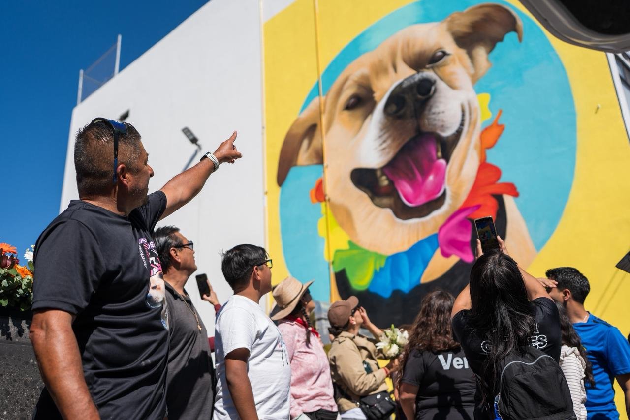 La urna con las cenizas de “Chicles” ahora descansa en la primera etapa de su monumento, ubicada justo a un costado de un mural que lleva su rostro, como un homenaje eterno al perrito que conquistó los corazones de los corredores tijuanenses.