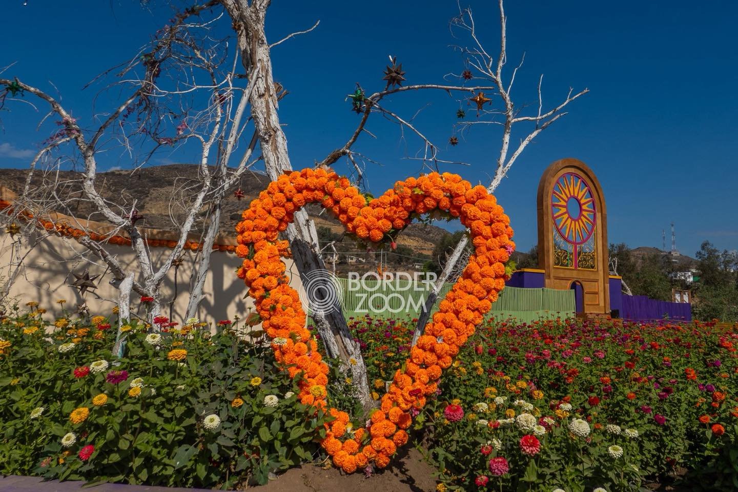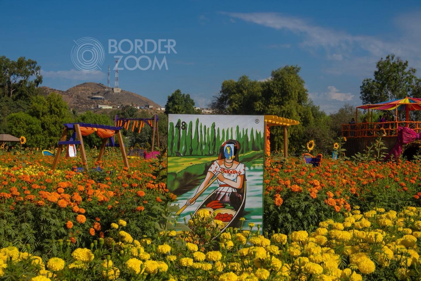 El recorrido por Mictlán comienza entre senderos cubiertos de flores de cempasúchil, conocidas como las “flores de muerto”, símbolo esencial del Día de Muertos por su color, aroma y su papel como guía para las almas que regresan al mundo de los vivos.