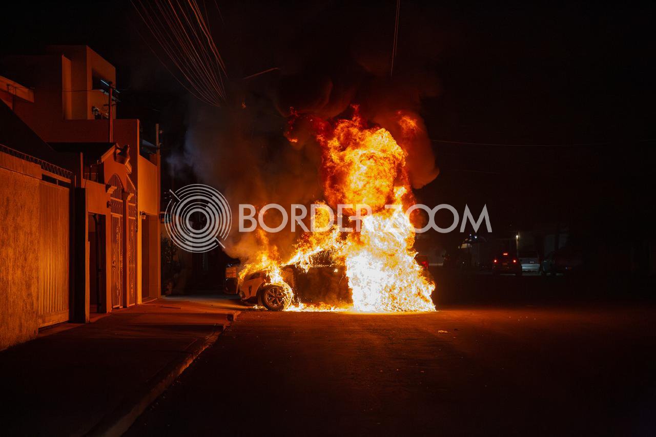 Una pareja incendió un automóvil la madrugada de este jueves afuera de un domicilio ubicado en la calle Baja California y avenida Cristóbal Colón, en la colonia Zona Norte.