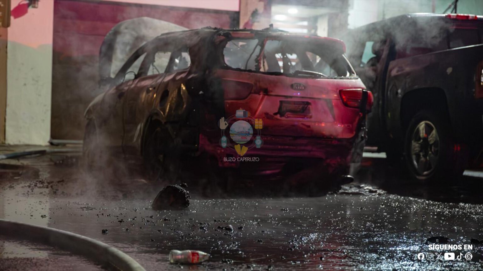 El saldo fue de un Kia de modelo reciente consumido en su totalidad y daños parciales a una camioneta Chevrolet Cheyenne.