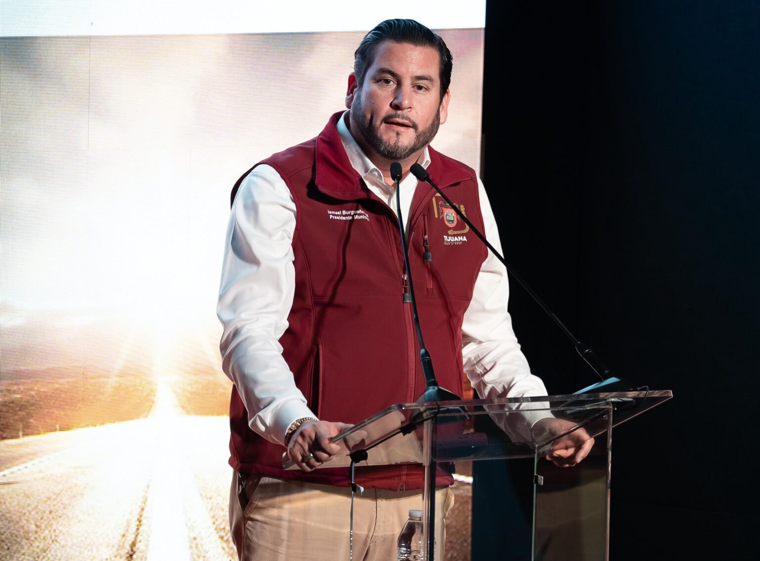 Tijuana, Baja California, a 1 de abril de 2026. El presidente municipal de Tijuana, Ismael Burgueño Ruiz, acompañó a la gobernadora del estado, Marina del Pilar Avila Olmeda, a la presentación del proyecto ‘Sube-T’ Supervía Bajacaliforniana Elevada de Tijuana, iniciativa que busca transformar la movilidad urbana en la ciudad, optimizar los tiempos de traslado y promover un desarrollo urbano más sostenible.