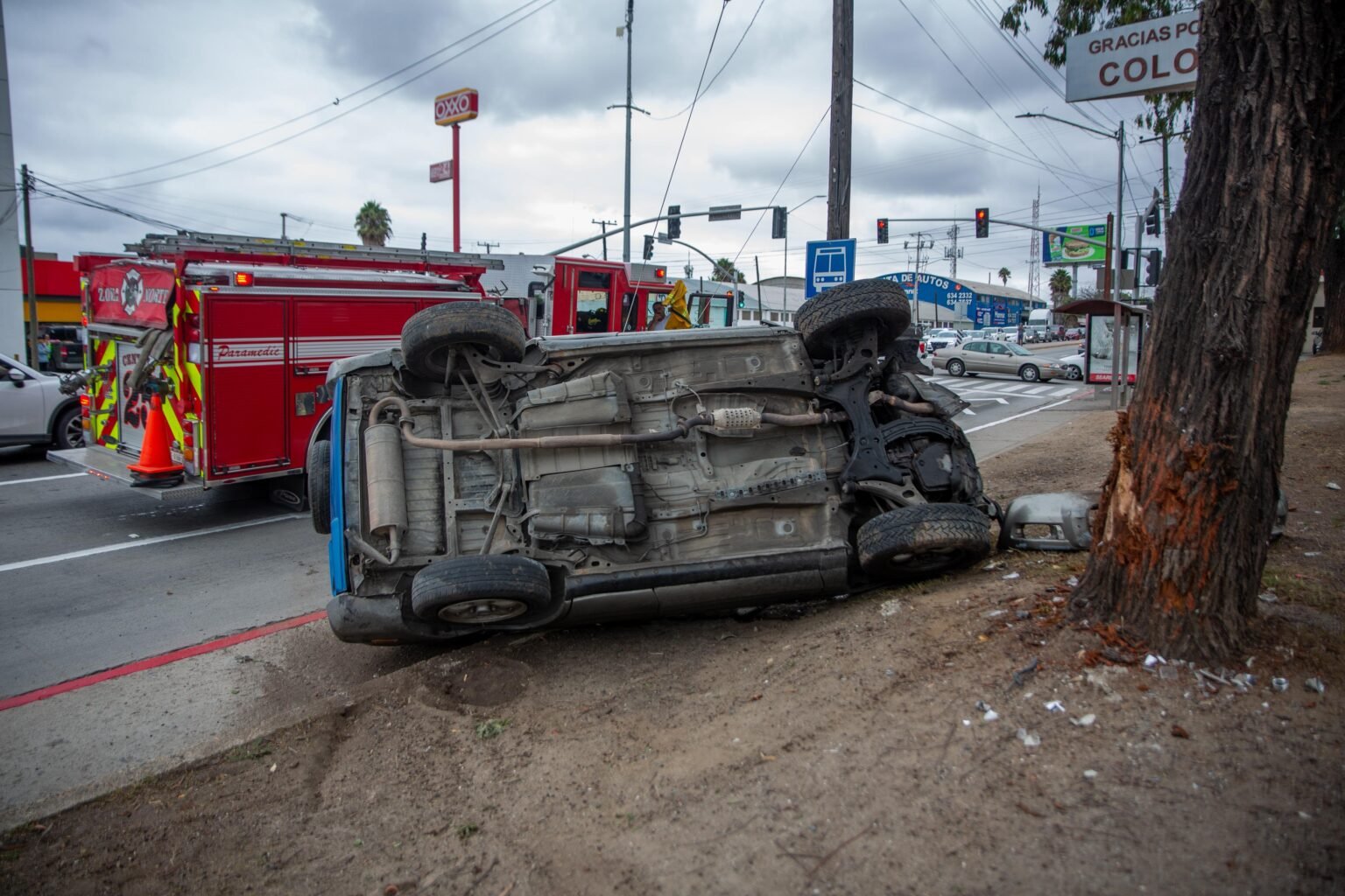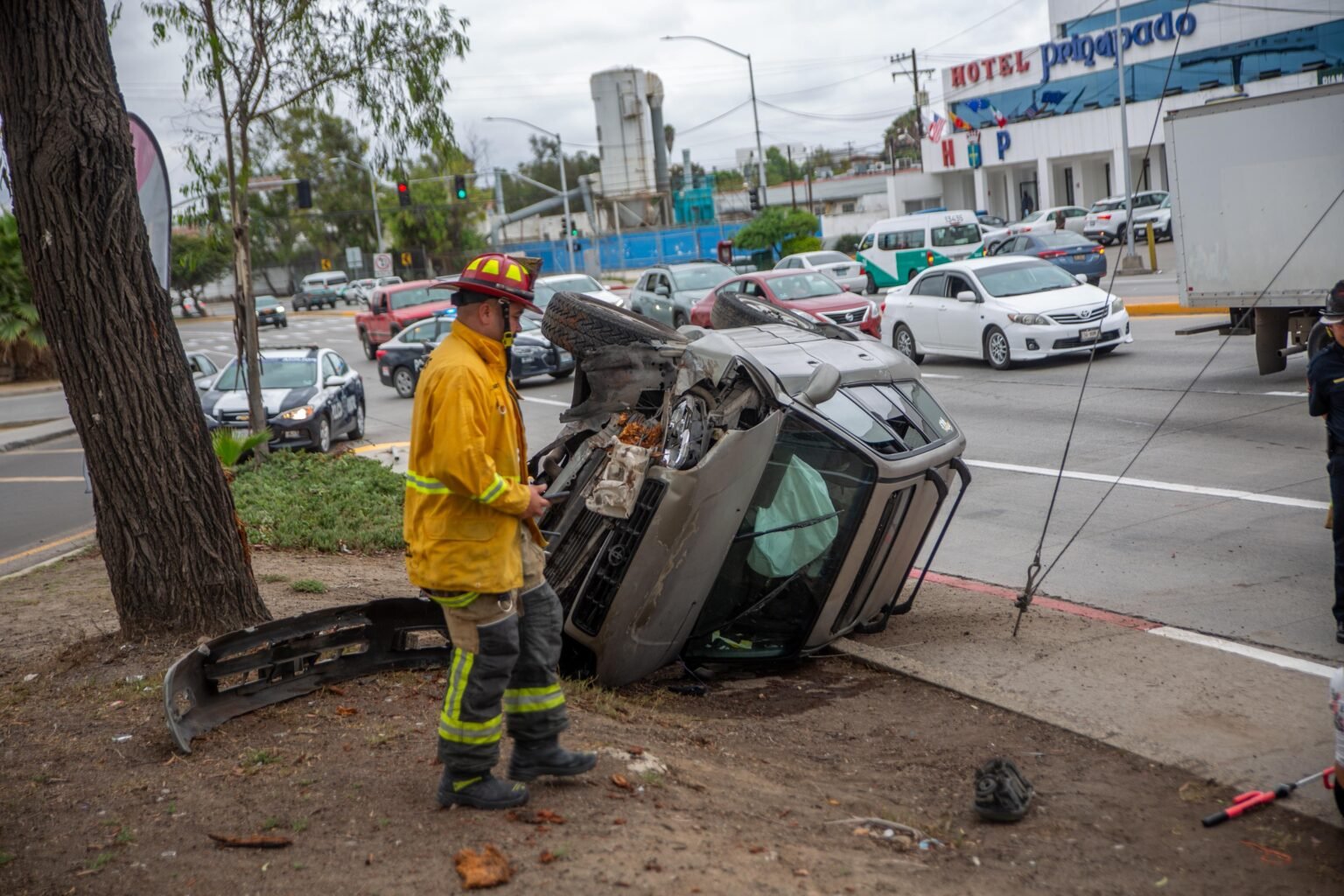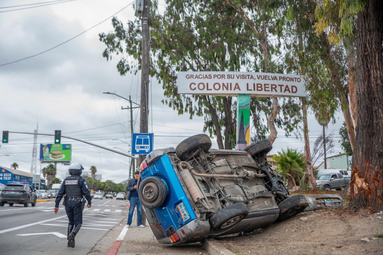 Una camioneta Toyota azul con placas de Baja California volcó la tarde de este viernes sobre el Bulevar Cuauhtémoc Norte, en dirección hacia el Aeropuerto, a la altura de la desviación a la colonia 70-76.