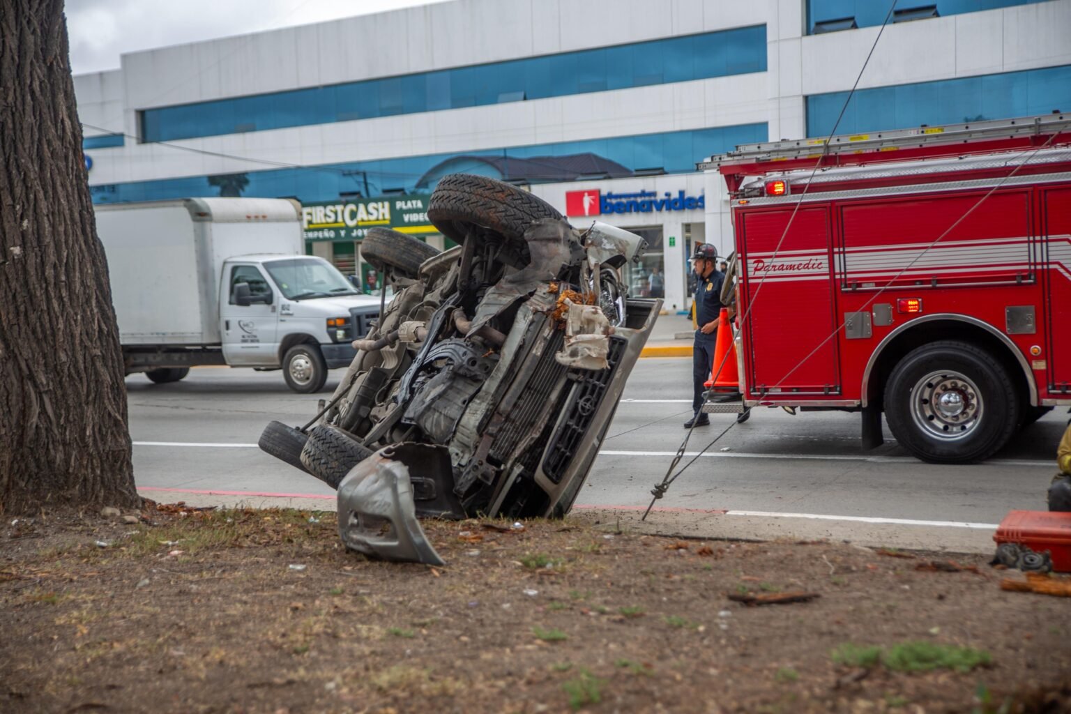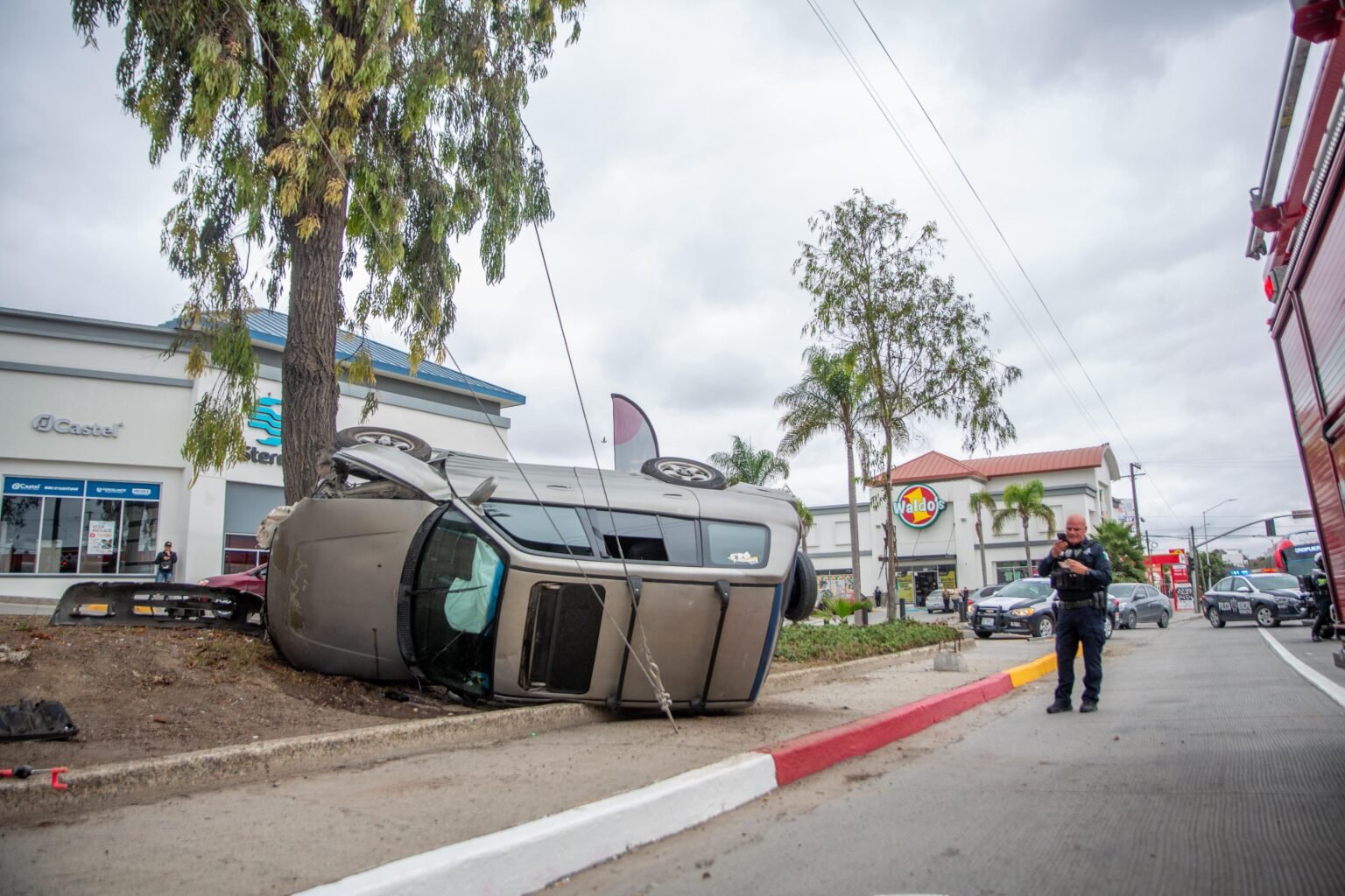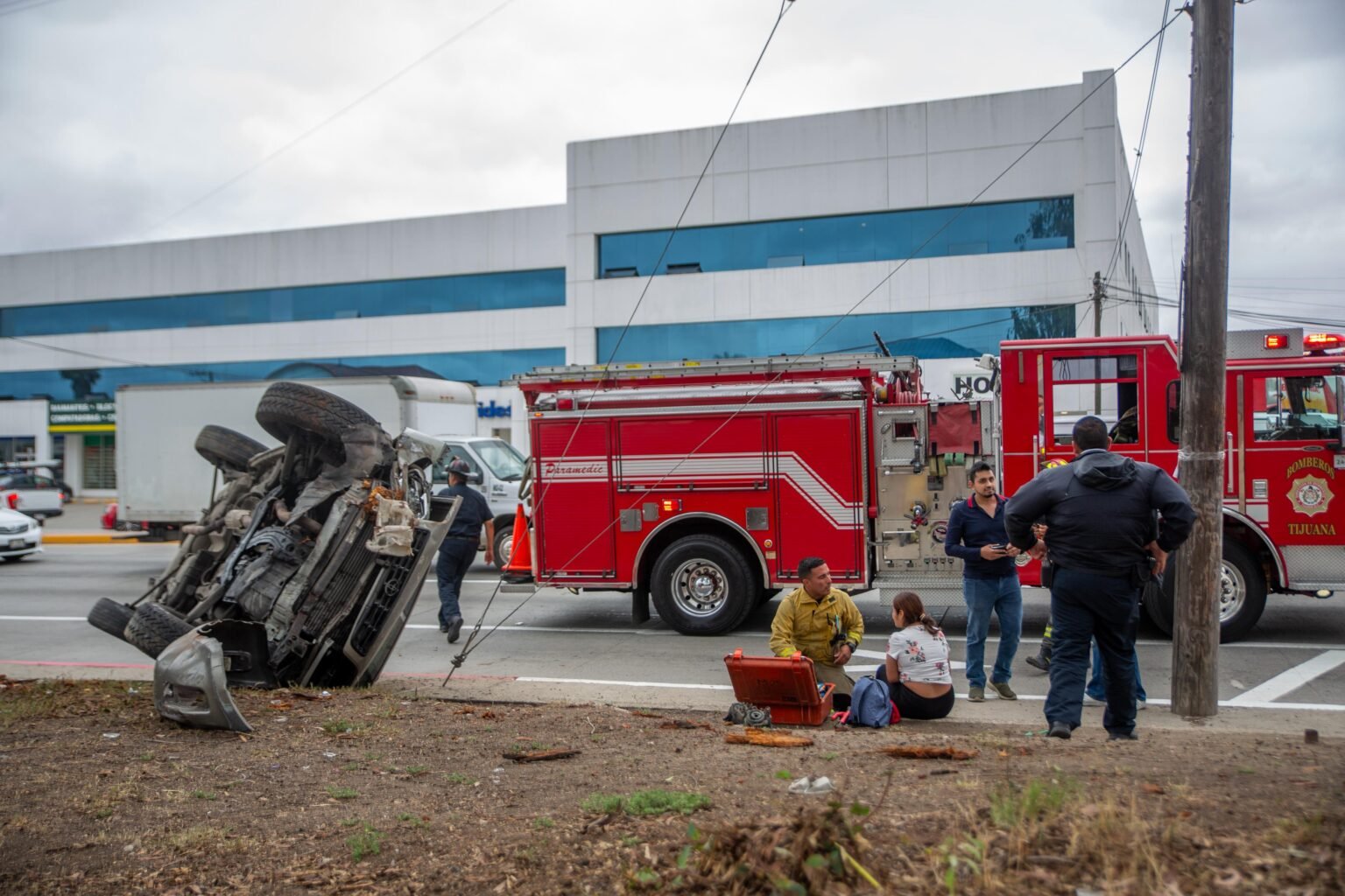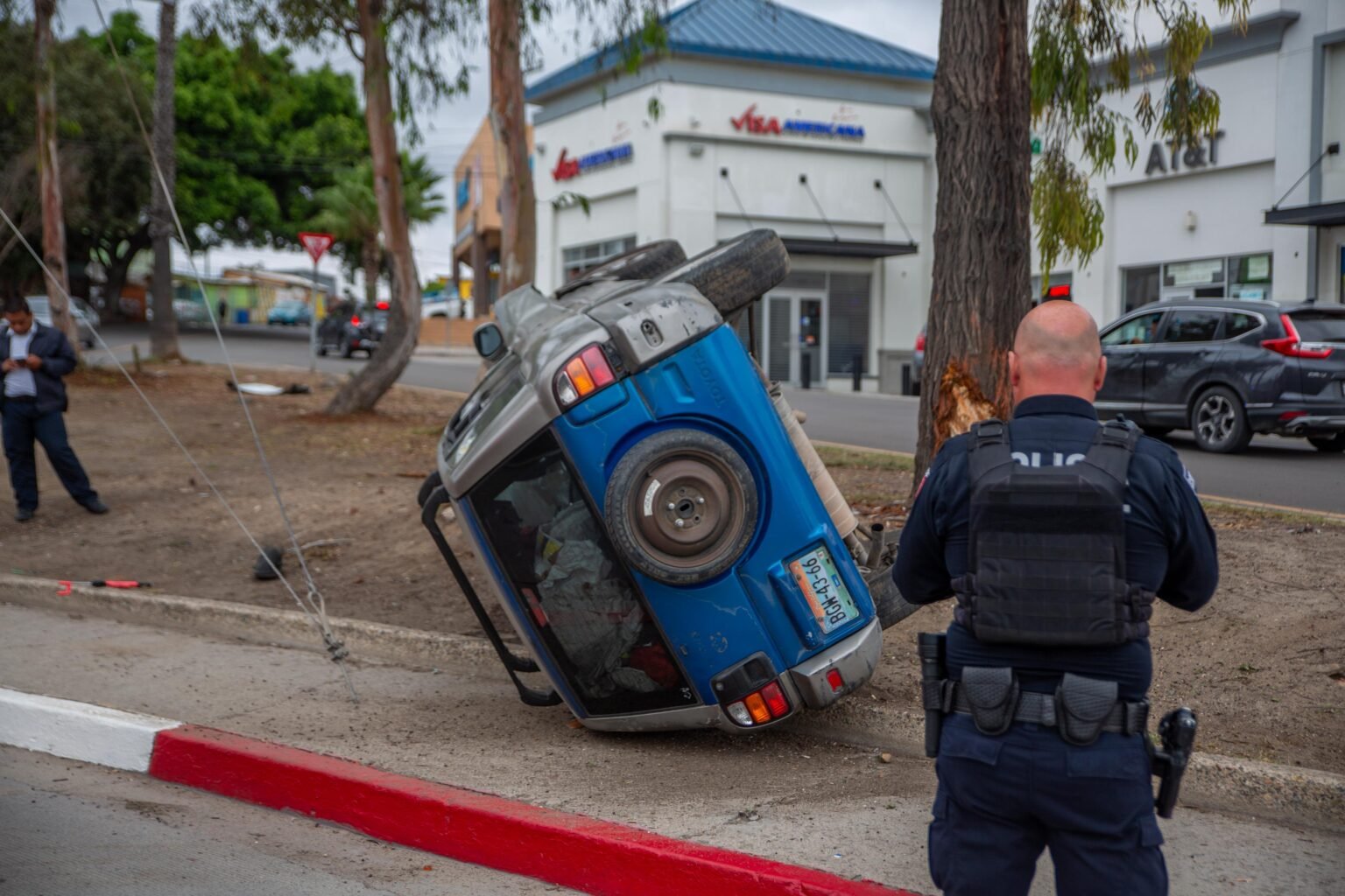 Una camioneta Toyota azul con placas de Baja California volcó la tarde de este viernes sobre el Bulevar Cuauhtémoc Norte, en dirección hacia el Aeropuerto, a la altura de la desviación a la colonia 70-76.