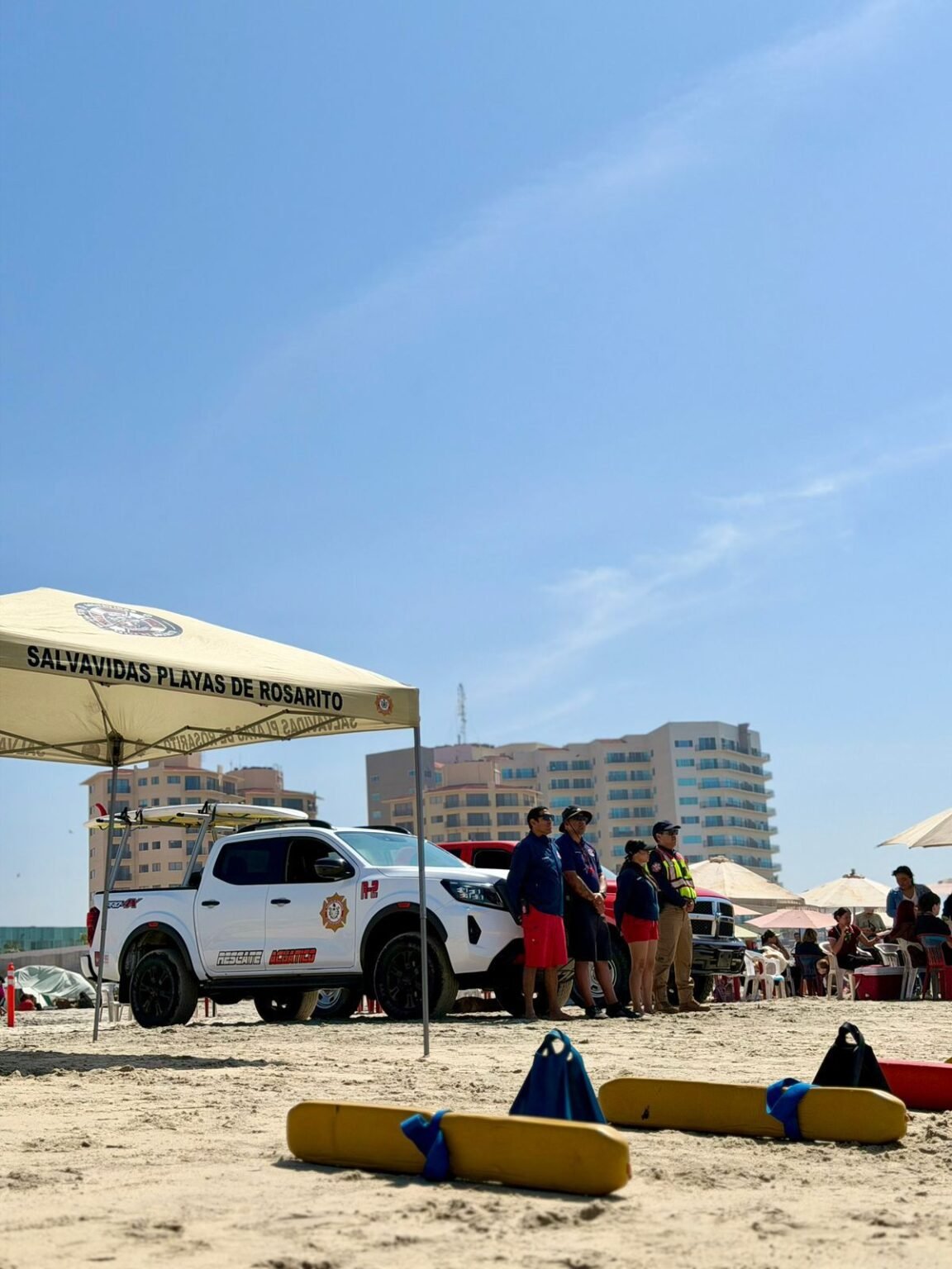 Con este operativo, el 10° Ayuntamiento de Playas de Rosarito reafirma su compromiso de salvaguardar la integridad de la población, fortaleciendo las acciones de prevención y vigilancia ante la importante afluencia registrada en el litoral del municipio.