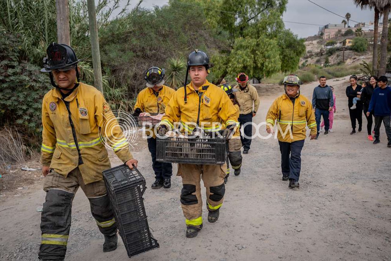 Elementos del Cuerpo de Bomberos respondieron al llamado de emergencia tras recibir el reporte de los animales en peligro.