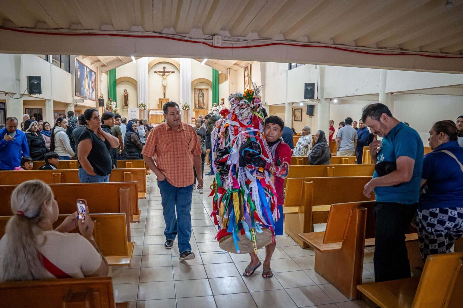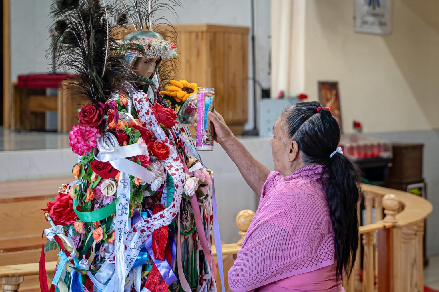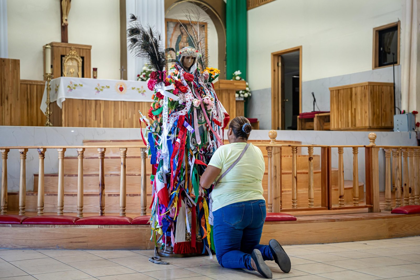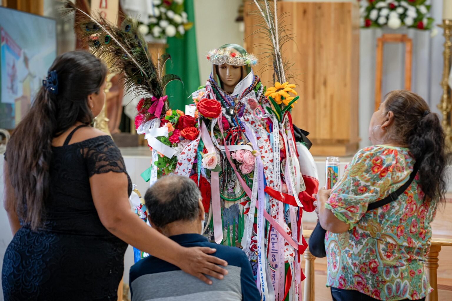 La Virgen del peregrino permaneció todo el sábado en la Iglesia Nuestra Señora de Guadalupe y Santa Teresita del Niño Jesús, en la colonia 3 de Octubre, donde los fieles pudieron acercarse para dejar alguna petición, dinero o tomarse una foto de recuerdo.