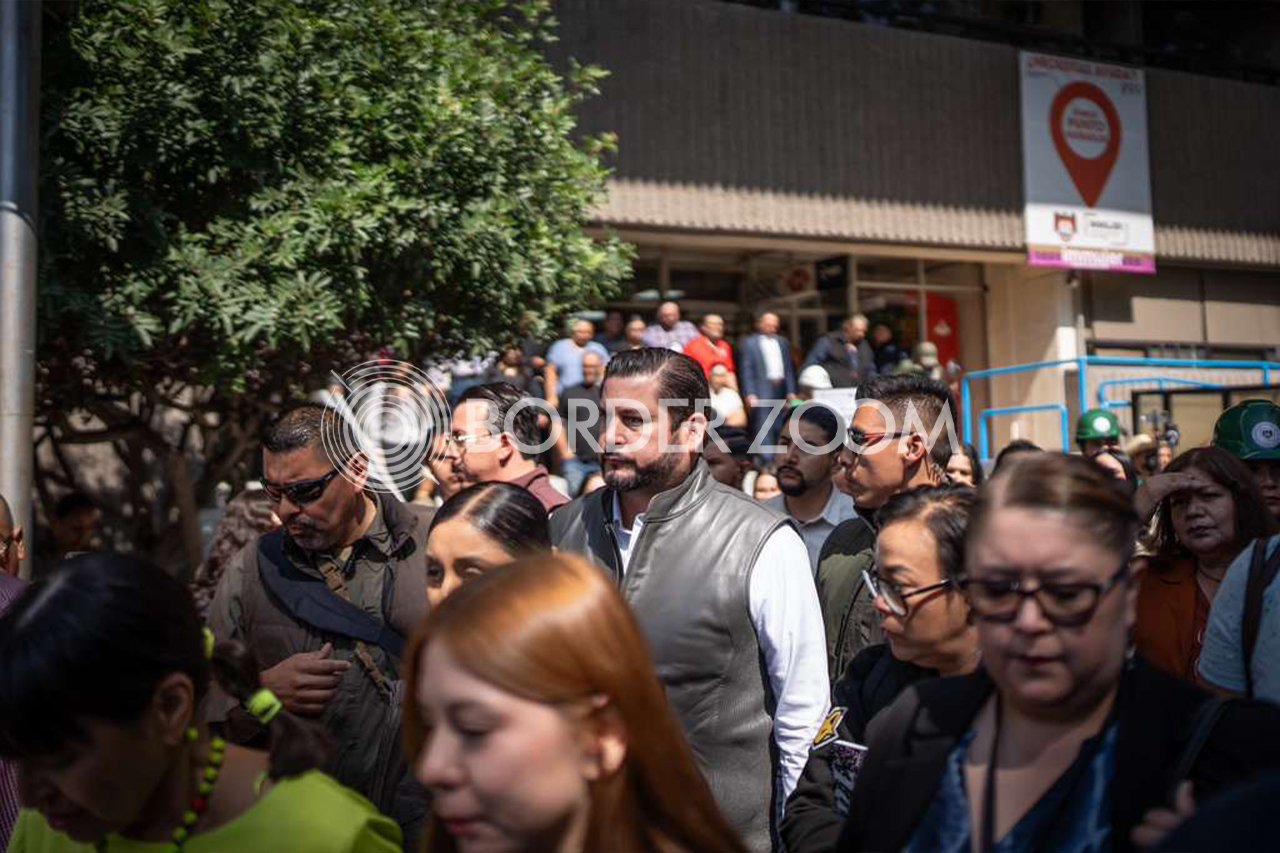 Por su parte, el director de Protección Civil Municipal, José Luis Jiménez González, informó que la evacuación del edificio se logró en cuatro minutos, con la participación de 700 empleados y 300 perosnas que acudieron a relizar trámites. Además, resaltó que el tiempo de desalojo se redujo en 30 segundos en comparación con el año pasado, lo que calificó como un éxito.