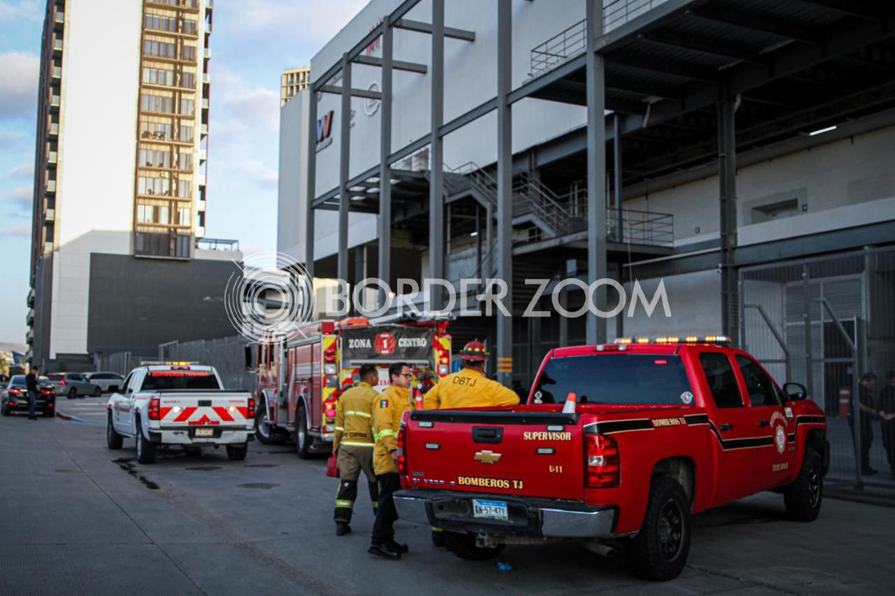 Elementos del cuerpo de bomberos paramédicos de la Cruz Roja llegaron al lugar tras recibir el aviso de que un trabajador había sufrido una descarga eléctrica mientras realizaba labores de mantenimiento en la Plaza Península.