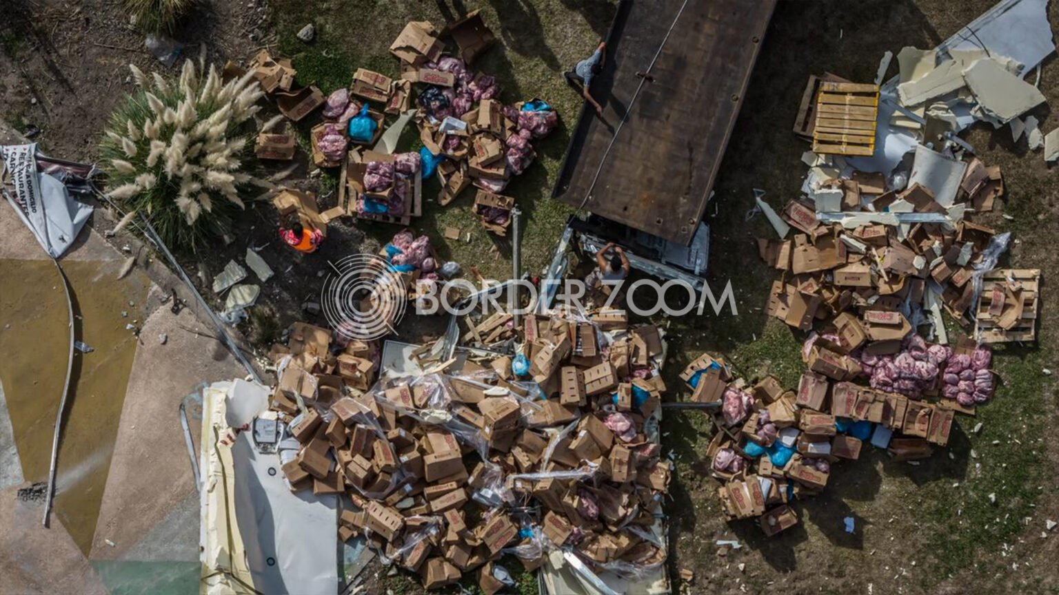 Poco después del incidente, personal de la empresa arribó al sitio para comenzar las labores de recuperación de la mercancía, cargando las cajas de carne que transportaba el vehículo siniestrado.