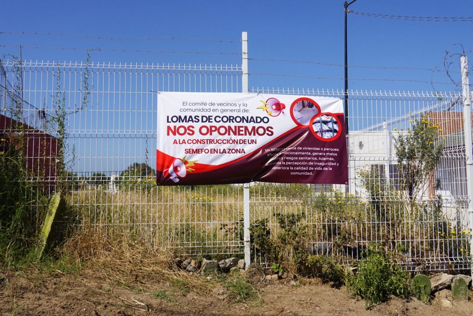 Residentes del fraccionamiento Lomas del Coronado, en Playas de Rosarito, manifestaron su rechazo a la posible instalación de un área del Servicio Médico Forense (SEMEFO) en un inmueble de la zona, al considerar que el proyecto no cumple con los lineamientos establecidos y carece de consenso vecinal.